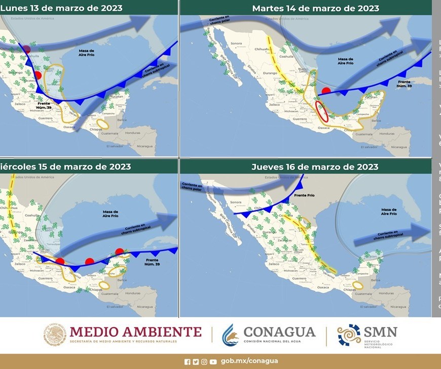 Un nuevo frente frío ocasionará rachas fuertes de viento con tolvaneras durante la semana en San Luis Potosí Ø El sistema frontal Núm. 39 interaccionará con un canal de baja presión, originará lluvias fuertes a muy fuertes con descargas eléctricas en el noreste de México. Ø El miércoles un nuevo frente frío se aproximará al norte de Baja California. De acuerdo con el pronóstico para … Continúa leyendo FRENTE FRÍO OCASIONARÁ FUERTES VIENTOS CON TOLVANERAS EN SLP