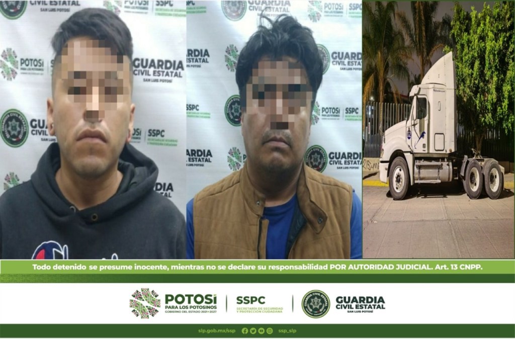 Mediante las acciones de vigilancia y atención a los llamados de la ciudadanía sobre hechos ilícitos, agentes de la Guardia Civil Estatal (GCE) detuvieron a dos masculinos por el probable delito de posesión de un tracto camión con reporte de robo. Derivado de esta reacción inmediata, la unidad se recuperó en menos de 24 horas de su reporte de robo, en la Capital del Estado.