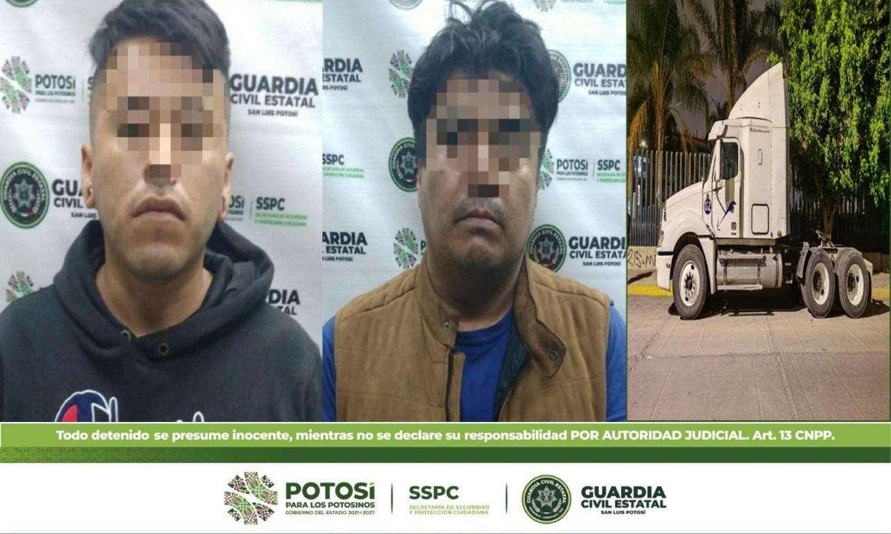 Mediante las acciones de vigilancia y atención a los llamados de la ciudadanía sobre hechos ilícitos, agentes de la Guardia Civil Estatal (GCE) detuvieron a dos masculinos por el probable delito de posesión de un tracto camión con reporte de robo. Derivado de esta reacción inmediata, la unidad se recuperó en menos de 24 horas de su reporte de robo, en la Capital del Estado.