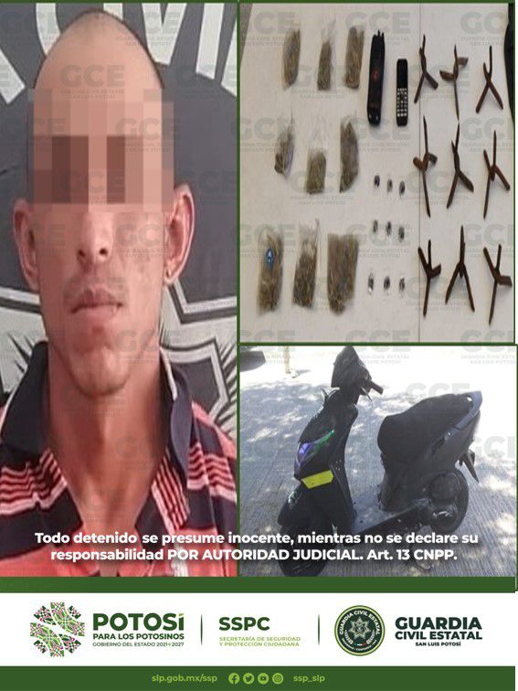 En el municipio de Cárdenas, durante los dispositivos en las calles de Miguel Barragán y Galeana; ahí, fue detenido Julián de 29 años de edad tras el aseguramiento de 9 dosis de marihuana y otras 9 de “cristal”, además de 9 artefactos conocidos como “poncha llantas”, un equipo de radio frecuencia, un celular y una motocicleta.