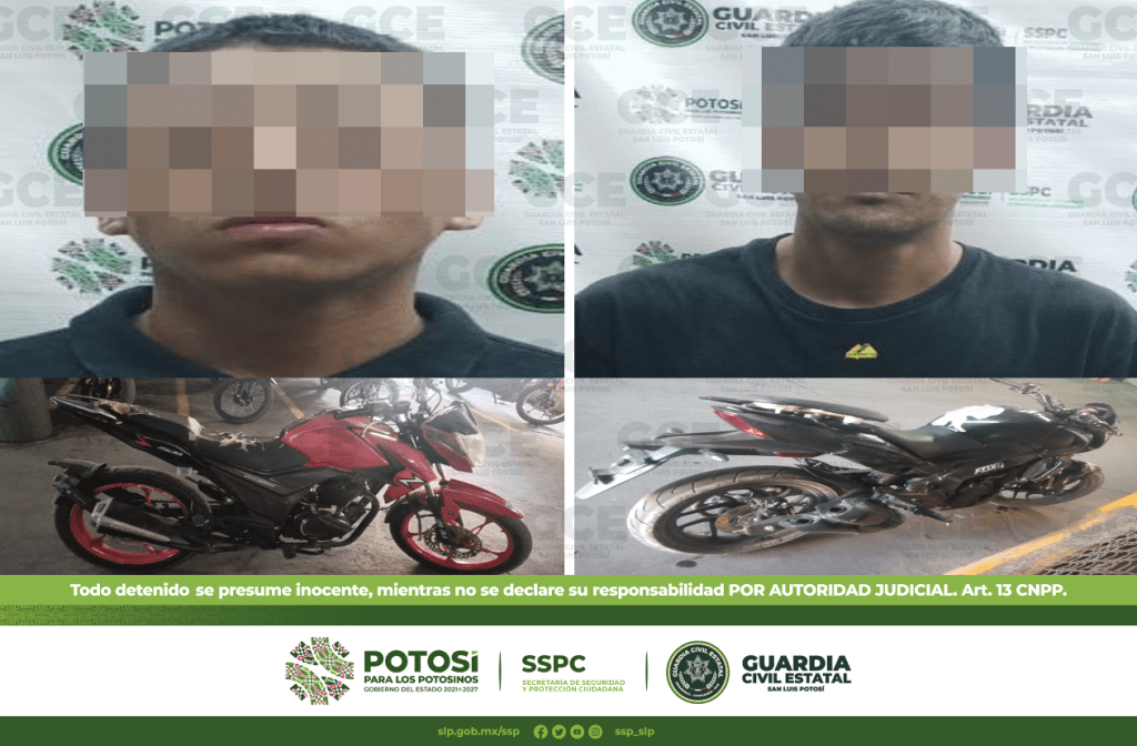 DOS CONDUCTORES DETENIDOS A BORDO DE MOTOCICLETAS ROBADAS EN SLP