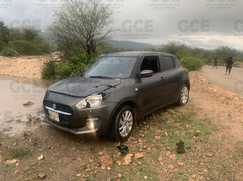 Los hechos fueron en la carretera estatal Pozo de Acuña-Guadalcázar, a la altura del kilómetro 35, donde elementos de la GCE visualizaron en la zona un automotor color gis, marca Suzuki, el cual presentaba impactos de proyectil de arma de fuego en la carrocería.