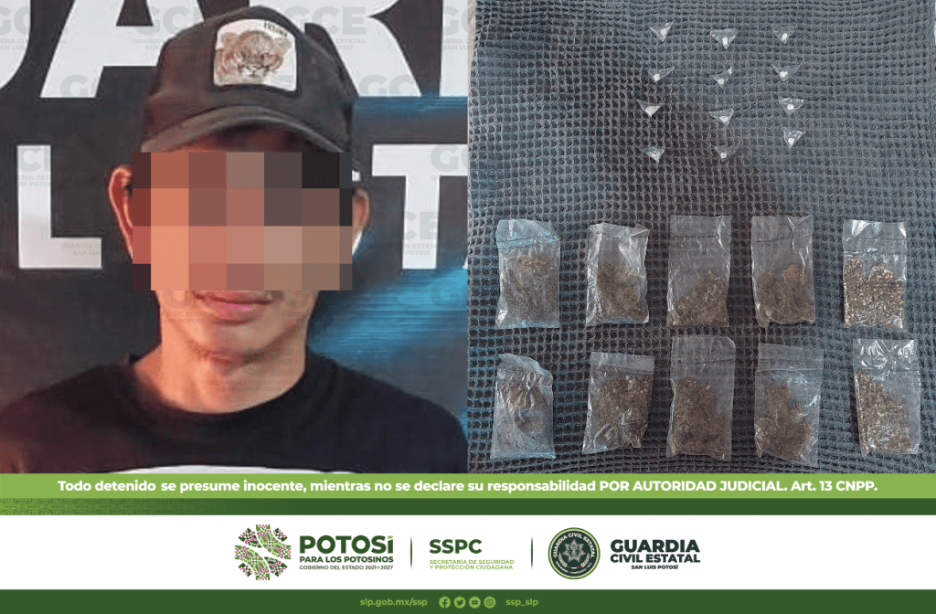 Las fuerzas del orden realizaban recorridos de seguridad y preventivos en la colonia El Naranjito, cuando al legar a las calles de Antonio Stradivarius y La Paz, ubicaron al presunto, lográndole encontrar 10 bolsas de marihuana y 12 dosis de “crack”.