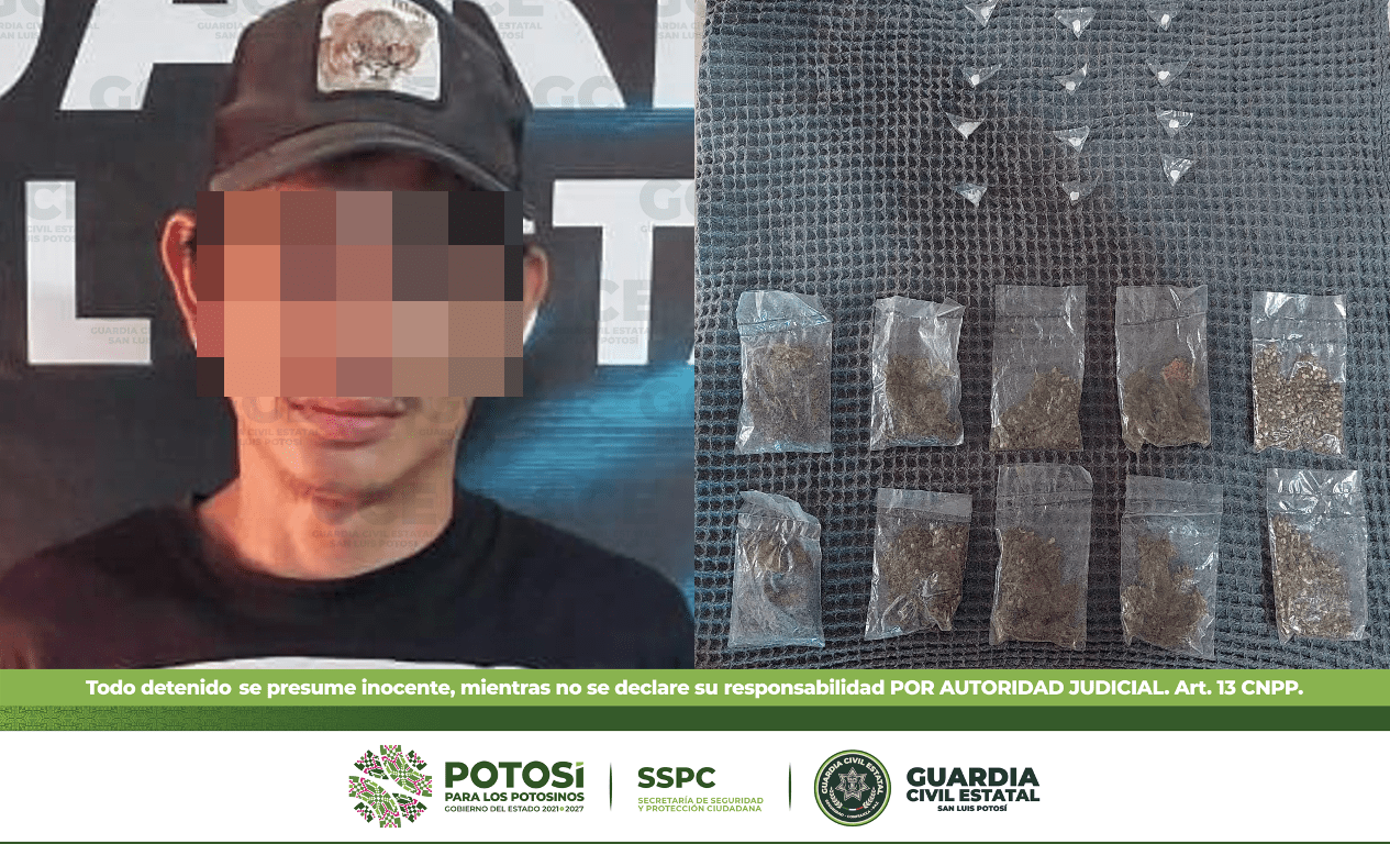 GUARDIA CIVIL ESTATAL DETIENE A PRESUNTO NARCOMENUDISTA CON 22 DOSIS DE ESTUPEFACIENTES EN EL NARANJO