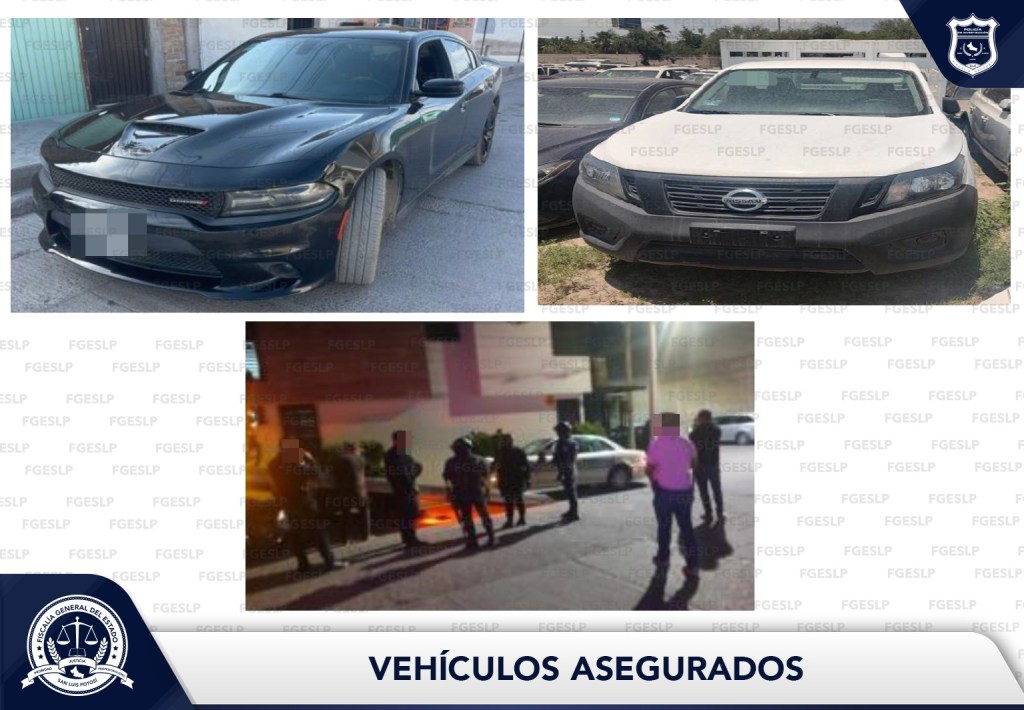 Agentes de la Policía de Investigación (PDI), realizaron el aseguramiento de tres vehículos, informó la Fiscalía General del Estado de San Luis Potosí (FGE).