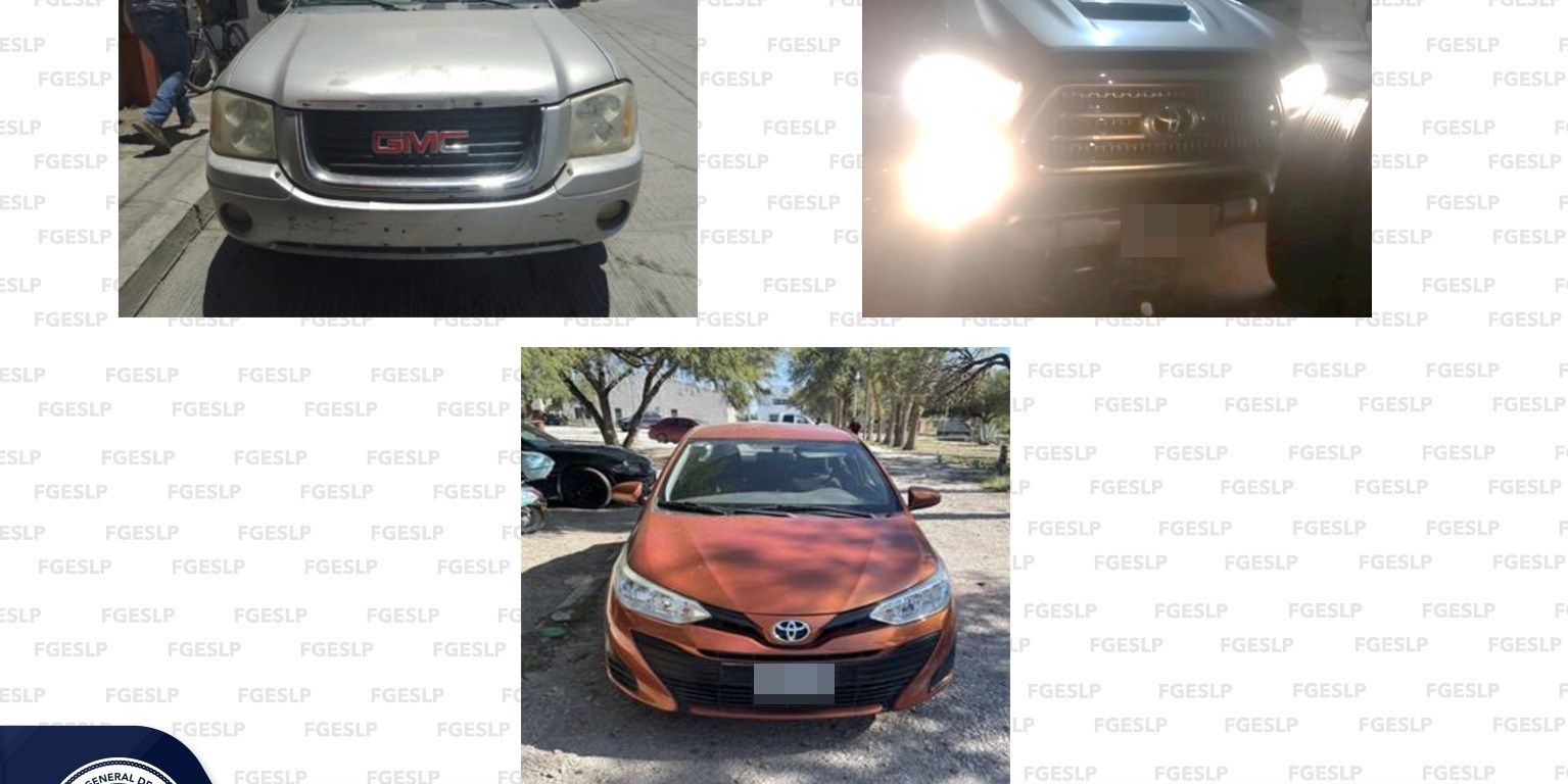 La Policía de Investigación (PDI) realizó el aseguramiento de tres vehículos en los municipios de Villa de Guadalupe, Venado, y la Capital, informó la Fiscalía General del Estado de San Luis Potosí (FGESLP).