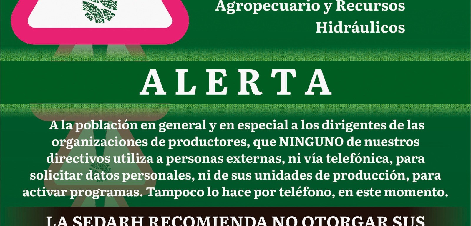 ALERTA SEDARH A PRODUCTORES DEL CAMPO ANTE LLAMADAS DE FRAUDE