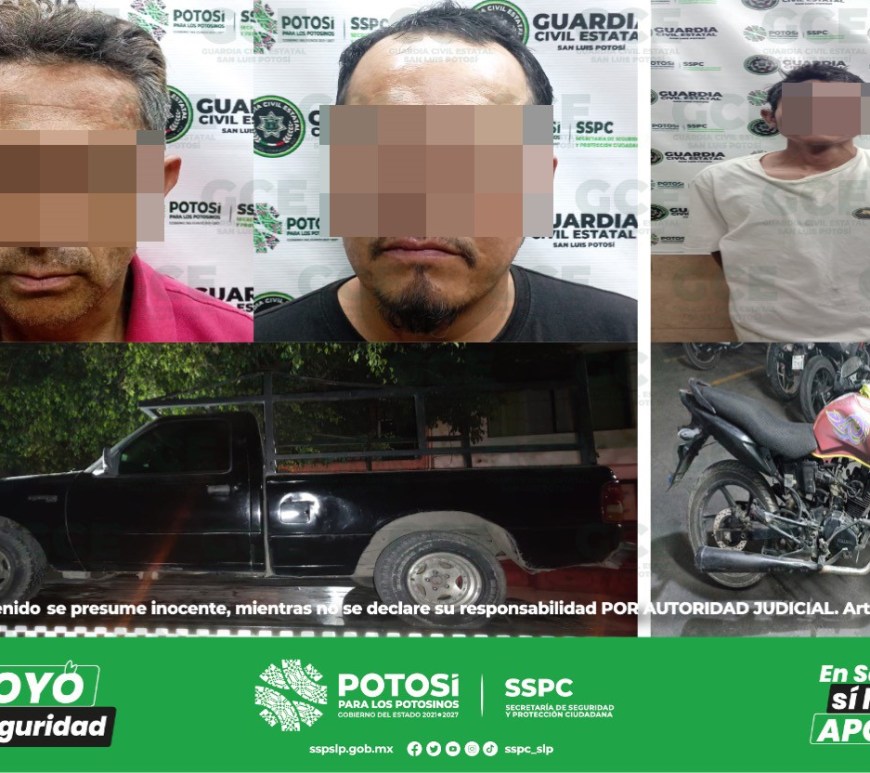 TRES PRESUNTOS QUE SE DESPLAZABAN EN UNIDADES ROBADAS SON DETENIDOS POR GUARDIA CIVIL ESTATAL Como resultado de los dispositivos de seguridad desplegados en la zona oriente de la capital potosina, tres personas quedaron detenidas por la Guardia Civil Estatal (GCE) después de que no pudieran acreditar ser los dueños de las unidades en las que se desplazaban. En uno de los casos, dos individuos fueron … Continúa leyendo DETIENEN A 03 POR TRASLADARSE EN VEHICULOS ROBADOS