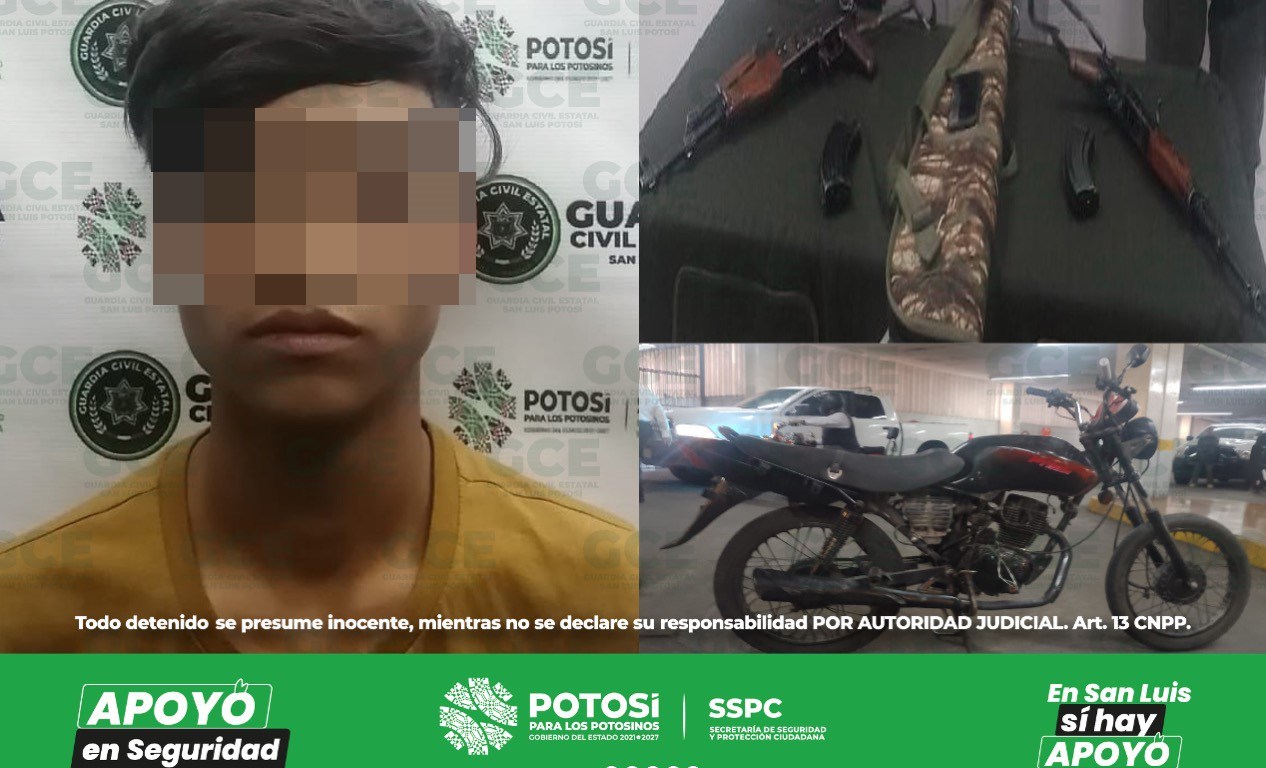 En el marco de las acciones operativas que se han visto reforzadas en esta región con el dispositivo “Altiplano Seguro”, agentes de la Guardia Civil Estatal, capturaron a un sujeto vinculado con un grupo delictivo a quien servía para diversas actividades ilícitas; al momento de su detención se le aseguraron armas de alto poder, cargadores y cartuchos útiles.