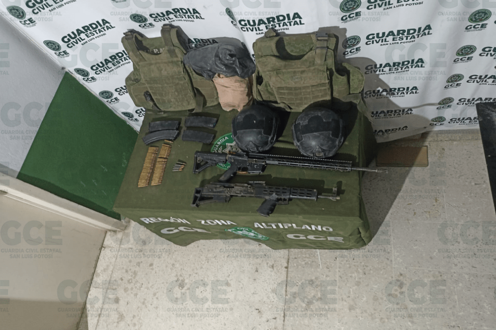 En el marco de las acciones de reacción y disuasión, efectuadas en el dispositivo “Altiplano Seguro”, oficiales de la Guardia Civil Estatal (GCE) en coordinación con la Secretaría de la Defensa Nacional, lograron el aseguramiento de armas de fuego, cargadores y equipo táctico de una supuesta red criminal.
