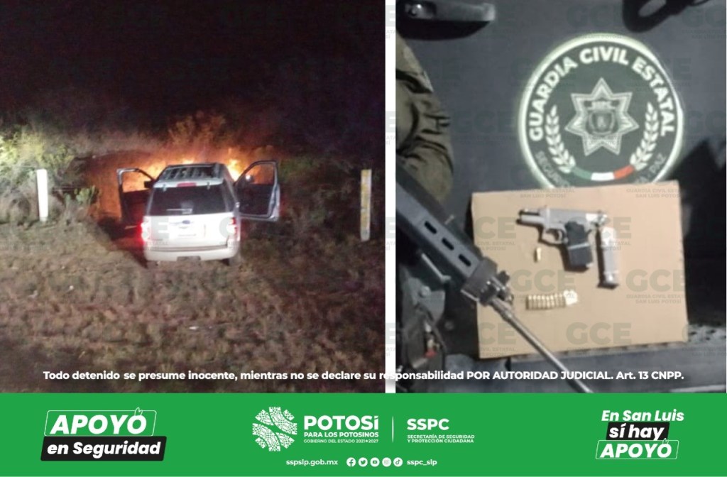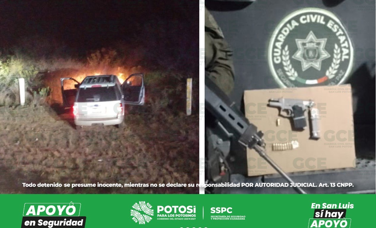 Los hechos se suscitaron en el kilómetro 97 de la carretera 49 S.L.P. – Zacatecas, oficiales estatales detectaron en esta vía a los ocupantes de una camioneta marca Ford, línea Explorer, que no portaba placas de identificación, por lo anterior autoridades estatales les indicaron que se detuvieran, sin embargo, el conductor del vehículo hizo caso omiso y aceleró la marcha.