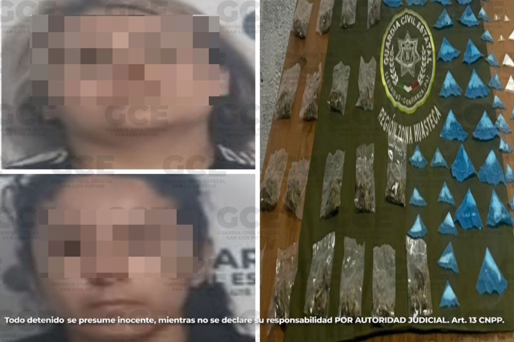 Por su parte, en el municipio de Tamasopo, Yesenia, de 30 años de edad y Alicia, de 24 años, quedaron detenidas con 19 bolsas con marihuana, 31 dosis de “cristal”, siete de “crack” y cinco de cocaína.