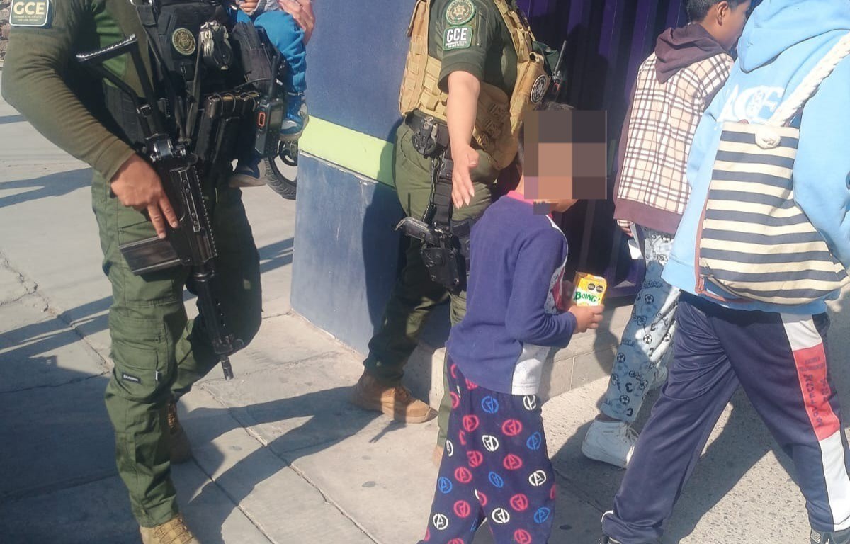 Posteriormente, se trasladó a los menores para su revisión médica, a la comandancia de la GCE, donde nuestros agentes estatales atendieron con calidad y sentido humano a los infantes, donde se preservaron sus derechos y se les brindó alimento.